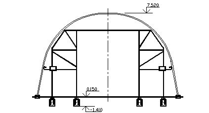 , а масса балки становится сравнимой с массой фермы. При этом сохраняется жесткость верхней части колонны и тем самым улучшается работа рамы на горизонтальные нагрузки. Размер 3. Замена в конструкции покрытия решетчатого ригеля на арку с затяжкой. Такое решение используется для однопролетных зданий. Оно особенно эффективно при перевозке конструкций на большие расстояния – рис. Е2.