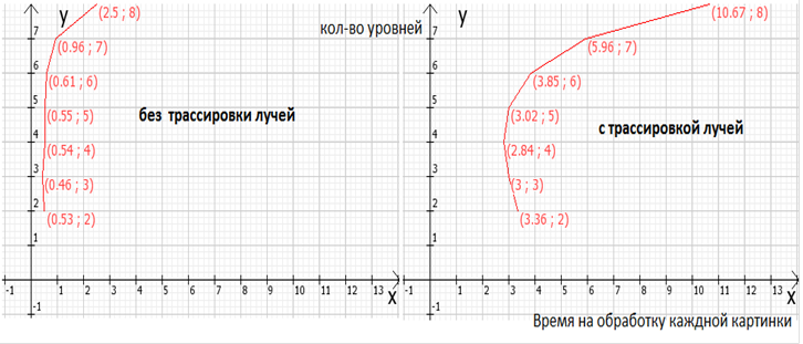 Из данного анализа видно, что качество изображений с использованием трассировки лучей существенно лучше, чем изображений полученных без нее, что оправдывает использование данного метода в областях, где важно качество полученного изображения, а не время его обработки. |