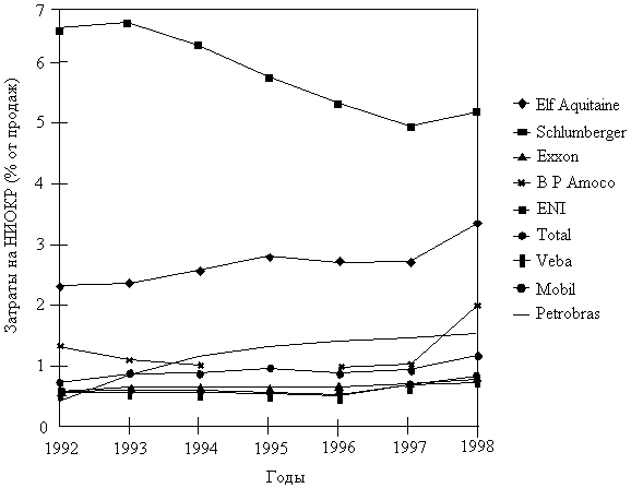 Рис. 13. Затраты на НИОКР: нефтяная промышленность Таблица 4.1