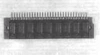 Рис.3.2.1 Стандартный SIPP -корпус SIPP является сокращением слов Single Inline Package. SIPP-модули соединяются с системной платой с помощью контактных штырьков. Под контактной колодкой находятся 30 маленьких штырьков (смотри рисунок B.3.3.), которые вставляются в соответствующую панель системной платы. Модули SIPP имели определенные вырезы, которые не позволяли вставить их в разъемы неправильным образом. По мнению автора, этот вид модулей лидировал по простоте их установки на системную плату. 3.3 SIMM, DIMM и RIMMВ большинстве современных компьютеров вместо отдельных микросхем памяти используются модули SIMM или DIMM, представляющие собой небольшие платы, которые устанавливаются в специальные разъемы на системной плате или плате памяти. Отдельные микросхемы так припаены к плате модуля SIMM или DIMM, что выпаить и заменить их практически невозможно. При появлении неисправности приходится заменять весь модуль. По существу, модуль SIMM или DIMM можно считать одной большой микросхемой. В РС совместимых компьютерах применяются в основном два типа модулей SIMM: 30-контактные (9разрядов) и 72-контактные (36 разрядов). Первые из них меньше по размерам. Микросхемы в модулях SIMM могут устанавливаться как на одной, так и на обеих сторонах платы. Использование 30-контактных модулей неэффективно, поскольку для заполнения одного банка памяти новых 64-разрядных систем требуется восемь таких модулей. 72-пиновые разъемы SIMM ожидает та же участь, которая несколькими годами раньше постигла их 30-пиновых предшественников: те уже давно не производятся. Им на смену в 1996 г. пришел новый разъем DIMM со 168 контактами, а после и разъем RIMM. Если на SIMM реализовывались FPM и EDO RAM, то на DIMM более современная технология SDRAM. В системную плату модули SIMM необходимо было вставлять только попарно, а DIMM можно выбрать по одному, что связано с разрядностью внешней шины данных процессоров Pentium. Такой способ установки предоставляет больше возможностей для варьирования объема оперативной памяти. Первоначально материнские платы поддерживали оба разъема, но уже довольно продолжительное время они комплектуются исключительно разъемами DIMM. Это связано с упомянутой возможностью устанавливать их по одному модулю и тем, что SDRAM обладает большим быстродействием по сравнению с FPM и EDORAM. Если для FPM и EDO памяти указывается время чтения первой ячейки в цепочке (время доступа), то для SDRAM указывается время считывания последующих ячеек. Цепочка - несколько последовательных ячеек. На считывание первой ячейки уходит довольно много времени (60-70 нс) независимо от типа памяти, а вот время чтения последующих сильно зависит от типа. В качестве оперативной памяти также используются модули RIMM, SO-DIMM и SO-RIMM. Все они имеют разное количество контактов. Модули SIMM сейчас встречаются только в старых моделях материнских плат, а им на смену пришли 168-контактные DIMM. Модули SO-DIMM и SO-RIMM, имеющие меньшее количество контактов, чем стандартные DIMM и RIMM, широко используются в портативных устройствах.