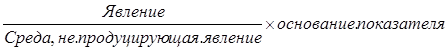 Интенсивные коэффициенты отражают частоту (уровень, распространенность) явления в однородной среде. На практике их применяют для оценки здоровья населения, медико-демографических процессов. Например: число случаев заболеваний с временной утратой трудоспособности на 100 работающих; число заболевших гипертонической болезнью на 1000 жителей; число родившихся на 1000 человек (определяется как отношение числа родившихся за год к средней численности населения административной территории, умноженное на 1000). Вычисление интенсивного показателя производится по формуле: