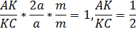 Условие: В треугольнике АВС АD – медиана, точка О – середина медианы. Прямая ВО пересекает сторону АС в точке К. Найти: АК:КС=?:? Решение: Пусть ВD = DС = а, АО = ОD = m. Прямая ВК пересекает две стороны и продолжение третьей стороны треугольника АDС. По теореме Менелая получаем