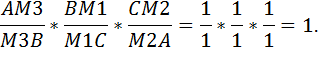 Рассматривая теорему Менелая для треугольников АМ1 С и АМ2 С, мы получаем, что
