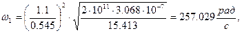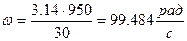 где i – количество лопаток, i = 12, Li – координаты центра тяжести лопаток, Li = 0.98 м, L – длина вала, L = 0.545 м. Угловая скорость вращения вала рассчитывается по формуле: