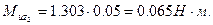 Крутящий момент в опасных по прочности сечениях в середине пролета вала рассчитывается по формуле: