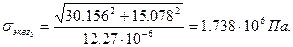 Эквивалентное напряжение в этих сечениях находим по формуле: