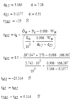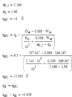 1.3.1 Определение граничной температуры наружнего воздуха, до которой в коровнике поддерживается температура воздуха 9.5 С за счет тепловыделения животных и калорифера. Пусть t.нг0=-25.Разность между рассчитанной