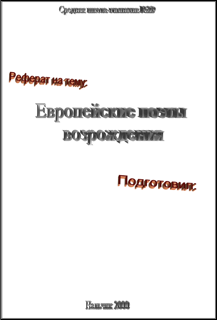 Название: Европейские поэты возрождения Раздел: Рефераты по культуре и искусству Тип: реферат |