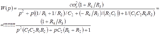 Тогда передаточная функция полиноминального ФНЧ второго порядка, реализованного на основе звена Сален-Ки принимает вид