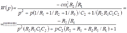 Тогда передаточная функция полиноминального ФНЧ второго порядка, реализованного на основе звена Рауха принимает вид