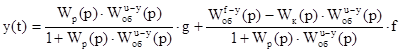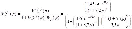 Интеграл (4.2) вычисляется приближённым (численным) методом для ряда значений времени t: от t = 0 до t = tmax . Максимальное значение времени tmax выбирают таким образом, чтобы к моменту t = tmax переходный процесс y(t) практически закончился. В соответствии с заданием для проверки правильности выполненных расчётов нужно построить переходные процессы в САУ по задающему и возмущающему воздействиям. Для построения переходной характеристики по задающему воздействию запишем передаточную функцию по заданию: