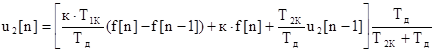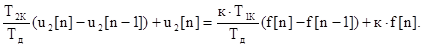 Более удобна для реализации на ЭВМ другая, так называемая скоростная форма этого алгоритма. Для её получения запишем значение u1 на предыдущем интервале дискретности: