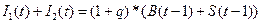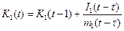 Входные параметры системы: Управляющие параметры: Здесь в качестве управляющих параметров можно выделить I 1 и I 2- объемы инвестиций, направляемые УГАИК на покупку первичного и вторичного жилья соответственно. Наблюдаемыми параметрами (факторами) являются: 1) Величина отчислений из бюджета г. Уфы на реализацию городской программы ипотечного кредитования В( t ) определяется из известных статистических данных по выделенным целевым бюджетным средствам в 2000-2003 гг. Для того чтобы определить величину этого параметра в будущем, нужно составить прогноз его развития. 2) Цены на первичное и вторичное жилье соответственно m 1( t ) и m 2( t ) определяются из соответствующих известных статистических данных в 2000-2003 г.г. Дальнейший прогноз строится с учетом оценок специалистов, отраженных в публикациях [11,12,14]. 3) Срок кредита n . Примем его равным 12,5 годам, т.к. если заемщик – бюджетник, то ему дадут кредит на срок 15 лет, а другим клиентам – на 10 лет. Их соотношение в общем числе клиентов примерно равное. 4) Процентная ставка i по ипотечному кредитованию через УГАИК по городской программе. Она установлена в размере 8% годовых и остается постоянной в течение всего периода планирования и по каждому кредиту в течение его срока. 5) В каждый конкретный момент времени в зависимости от выбранных ранее управлений мы наблюдаем сумму средств населения P ( t ) и сумму платежей за уже выданные кредиты S ( t ) . Величина P ( t ) может быть заменена на среднюю долю q средств населения в стоимости покупаемого жилья, а величина S ( t ) найдена из соотношений суммы кредита и ежегодных платежей по нему. Выходные параметры: Показатели эффективности, равные соответственно K 1( t ) и K 2( t ) , зависят от значений управляющих переменных, цен на жилье и величины бюджетных отчислений на развитие городской программы. 2. 2 .2. Связывание факторов с помощью математических отношений. Здесь с помощью математического аппарата производится введение переменных, функций, процессов и отношений, которые бы связывали входные и выходные параметры. Начало действия программы: 1 января 2000 года. Начальный момент времени Средства из городского бюджета поступают единой выплатой в моменты времени Кроме того, в УГАИК поступают платежи по уже выданным кредитам в сумме Также в моменты времени Средства из городского бюджета, средства населения и платежи за кредит в сумме образуют инвестиции, которые необходимо распределить в покупку первичного и вторичного жилья. В течение года эти средства полностью расходуются. Сумма Сумма В каждый момент времени