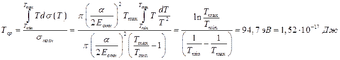 Минимальной передаваемой энергией является энергия дефектообразования: Tmin = Ed = 25 эВ = 4,0 × 10-18 Дж Определим среднюю передаваемую энергию:
