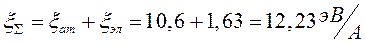 Тогда найдем потери энергии, идущие на возбуждение электронных оболочек: