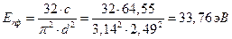 По полученному значению энергии фокусировки делаем вывод о том, что эффект простой фокусировки не будет присутствовать, т.к. не выполняется необходимое условие: Епва <Eпф . Энергия дополнительной фокусировки: Дополнительная фокусировка будет присутствовать, т.к. условие дополнительной фокусировки: Епф <Епва <Eдф – будет выполняться. Энергию возбуждения Евозб оцениваем следующим образом: Евозб , кэВ ~ А, а.е.м. А – атомная масса вещества.