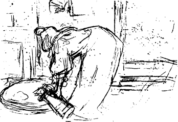 Э. Мане. Моющаяся. Около 1880. Кисть, размытая сангина. Роттердам, Музей Бойманс Начнем с того, что он характерен равномерной проработанностью изобразительной поверхности. сетью недлинных штрихов, отмечающих все мелочи реальности и одновременно воспроизводящих иллюзорную, дагерротипную светотень. Штрих, в силу этого. лишается выразительности, динамики, он перестает быть определяющим элементом рисунка, он становится как бы безликим. нейтральным,— всего лишь средством изобразительного рассказа. Это определяет и технику такого рисунка. Он делается главным образом или тонко заточенным графитным карандашом («карандаш Конте»), кропотливо обрисовывающим все детали, или анилиновыми чернилами и стальным пером, жестким и непластичным (в отличие от прежнего — гусиного или тростникового), требующим подробной моделирующей штриховки, очень популярной становится новая техника — соус, мягкая или жидкая графитная краска на водяной основе. дающая, на первый взгляд, живописный эффект, но в действительности — в большой мере позволяющая имитировать светотень, свойственную фотографии.