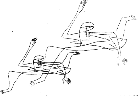 П. Клее. Бегство впереди себя. Перо, тушь. Берн, Художественный музей Такой рисунок обретает свойства формулировочности и концептуальности и, воплощая истинную чистоту линеарного стиля, заключает в себе свойства особой одухотворенности. Он в гораздо меньшей степени изображает зримую реальность, чем создает графическую аналогию этой реальности. В таком рисунке материальная характеристика — излишня, она словно бы возвращает рисунок к конкретности данного факта реальности. И одновременно рисунок не ищет приемов внешней экспрессивности: энергия заключена в самой линии, в строжайшей экономии ее движения. Такая, в сущности, дематериализованная линия стремится не обрисовать то или иное явление, но выразить его внутренний образ, как бы чистую его идею: первоначальная реальность воссоздается из рисунка зрителем, но обогащенная этим его душевным усилием и индивидуальными ассоциациями. Поэтому-то в современном рисунке так сильно метафорическое начало. Характерно, что в таком строгом линейном рисунке почти всегда присутствует та или иная степень деформации, которая лишает его чертежной бездушности. Ибо, во-первых, деформация—это метод выразить свое отношение к миру, то очень личное чувство, которое натура рождает в художнике; и, во-вторых,— деформация возникает от ощущения подвижности самой материи, сознания ее не как чего-то ставшего, но постоянно становящегося, как «мучения материи». И еще одно важное свойство подобного рисунка. Стремление в пределе к графическому знаку, утверждающему общие, постоянные, конструктивно определяющие признаки, приводит его к серийности, при которой автор, варьируя одну тему, один мотив, сообщает отвлеченному знаку многосмысленность, прочно удерживающему его в границах изобразительного искусства. Но при всей авторитетности подобного рисунка, определяемого, в первую очередь, такими именами, как Матисс и Пикассо.— это лишь одно из проявлений современного мышления.