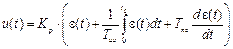 где Выбирая параметры регулятора Введение в закон управления дифференциальной составляющей усложняет анализ. Заметим только, что интуитивно ясно, что в начальный момент, когда ошибка изменяется «скачком», регулятор должен выдавать импульсный сигнал; когда же система приближается к стационарному состоянию, ошибка и ее производная стремятся к нулю, т.е. дифференциальная составляющая уже не влияет на управление. Практика реализации П-, ПИ- и ПИД-законов управления показала, что для различных технологических процессов суть управления не изменяется и возможно создание универсальных регуляторов, конструкция которых обеспечивает реализацию ПИД-законов с достаточно широким диапазоном изменения параметров Линейный ПИД-закон управления может быть реализован также в виде