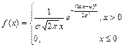 Пусть случайная величина X имеет нормальное распределение, тогда случайная величина Y= ex называется логарифмически нормальной. Можно показать, что плотность распределения этой величины определяется формулой