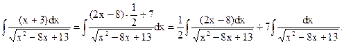 Второй интеграл преобразуем путем выделения полного квадрата в подкоренном выражении: