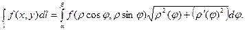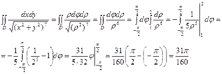Решение. Будем вычислять интеграл в полярных координатах по формуле (35):