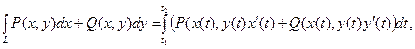 Формула (25) позволяет преобразовать криволинейный интеграл в определенный: