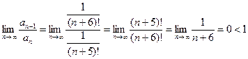 Получили положительный ряд. Применяем к нему достаточный признак сходимости – признак Даламбера: если Поскольку