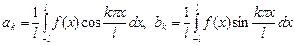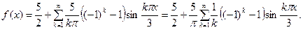 Воспользуемся формулами (36), (37) разложения в ряд Фурье функции