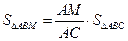 , так как III . Отношение площадей Рассмотрим треугольник ABC и выберем на стороне AC точку M . Если провести в треугольнике ABC высоту BH , то эта высота одновременно будет и высотой в треугольнике ABM (рис. 10). Записывая площади треугольников ABC и ABM , получаем