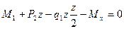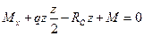 На участке имеется погонная нагрузка , направленная вниз, соответственно перерезывающая сила на этом участке убывает. Функция изгибающего момента - уравнение квадратной параболы. На эпюре моментов эта парабола направлена выпуклостью вверх, т.к. погонная нагрузка направлена вниз.