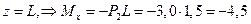 В сечении по заделке сосредоточена реакция , на схеме направленная вверх, но ее значение отрицательное . Знак минус означает, что фактически сосредоточенная сила направлена вниз. Соответственно на эпюре имеем скачок вниз на величину этой реакции.