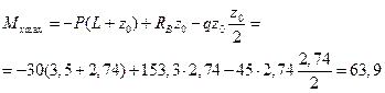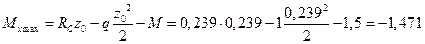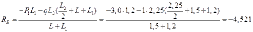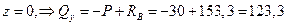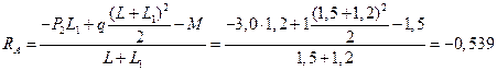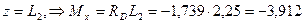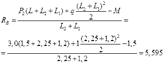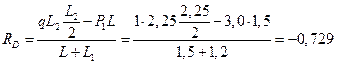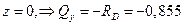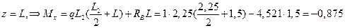 В сечении по опоре сосредоточена реакция , на схеме направленная вверх, но ее значение отрицательное . Знак минус означает, что фактически сосредоточенная сила направлена вниз. Соответственно на эпюре имеем скачок вниз на величину этой реакции.