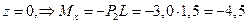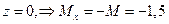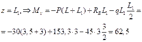 В точке приложен момент реакции , который действует по часовой стрелке, но его значение отрицательное, следовательно, на эпюре имеем скачок вниз на величину этого момента.