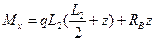 На участке имеется погонная нагрузка , направленная вверх, соответственно перерезывающая сила на этом участке возрастает. Функция изгибающего момента - уравнение квадратной параболы. На эпюре моментов эта парабола направлена выпуклостью вниз, т.к. погонная нагрузка направлена вверх.