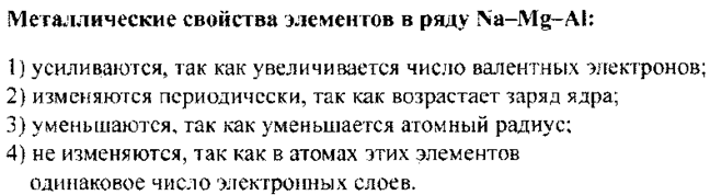 рис. 1. Изменение свойств элементов по горизонтали (по периодам) и вертикали (по группам) Причина изменения свойств также объясняется строением атомов химических элементов. Каждый период начинается элементом щелочным металлом (исключение – первый период), в атомах которых на внешнем энергетическом уровне имеются один s – электрон. Общая электронная формула строения внешнего энергетического уровня щелочных металлов ns1 , где n – номер периода. Каждый период заканчивается элементом благородным газом. В атомах элементов благородных газов на внешнем энергетическом уровне имеются два s - и шесть p -электронов. Общая электронная формула строения внешнего энергетического уровня благородных газов ns2 np6 , где n - номер периода (исключение: гелий He - ns2 ). Период - это горизонтальная последовательность элементов по возрастанию порядкового (атомного) номера элемента, атомы которых имеют одинаковое число энергетических уровней, численно равное номеру периода . В периодах металлические свойства уменьшаются, а неметаллические свойства увеличиваются. В больших периодах изменения свойств происходят медленнее, что объясняется появлением десяти d -элементов (4-й, 5-й периоды) и четырнадцати f -элементов (6-й, 7-й периоды). По группам (в главных подгруппах) металлические свойства увеличиваются, а неметаллические уменьшаются. Группа - это вертикальная последовательность элементов по возрастанию порядкового (атомного) номера, обладающая схожими свойствами. Главная подгруппа - это вертикальная последовательность s- и p-элементов с одинаковым числом электронов на внешнем энергетическом уровне, равным номеру группы. Побочная подгруппа - это вертикальная последовательность d- и f-элементов, которые имеют одинаковое суммарное количество валентных электронов. Следовательно, возможна третья формулировка Периодического закона, которая отражает причину периодического изменения свойств. Свойства химических элементов и образованных ими соединений находятся в периодической зависимости от строения внешних энергетических уровней атомов. Изменение свойств элементов по диагонали Под диагональной периодичностью понимают повторяемость сходства химических свойств простых веществ и соединений элементов, расположенных по диагонали друг от друга. Диагональ из левого верхнего угла к нижнему правому объединяет отчасти сходные элементы. Это объясняется приблизительно одинаковым увеличением неметаллических свойств в периодах и металлических свойств в группах.