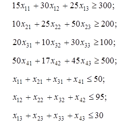 при ограничениях и при Последние три ограничения в виде равенств учитывают требования первого варианта о задействовании в перевозке груза всех судов. Математическая модель для 2-го варианта может быть представлена и при Рекомендация