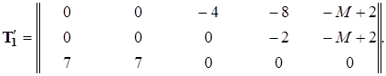 ЭТАП 6. ПОЛУЧЕНИЕ ОПТИМАЛЬНОГО РЕШЕНИЯ ИЛИ ВЫПОЛНЕНИЕ ОЧЕРЕДНОГО ШАГА Будем в новой, полученной на этапе 5, таблице, которая содержит числа Повторим этап 2 в рассматриваемом примере получим таблицу 5.11. Таблица 5.11
