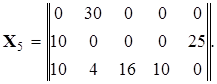 где для рассматриваемого случая Описанный вариант позволяет получить хотя бы один нуль в каждом столбце. В нашем примере (таблица 5.6) нам следует вычесть 4.5 из всех элементов первого столбца, 8 из всех элементов второго столбца и т.д. Таким образом мы получим числа Таблица 5.7