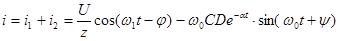 Графики тока и напряжения для этого случая приведены на рис.1.9. Такой процесс называется колебательным разрядом конденсатора. В течение этого процесса через каждые четверть периода колебаний происходит обмен энергией, запасенной в конденсаторе и катушке индуктивности. При этом часть энергии теряется в активном сопротивлении, что является причиной убывания амплитуды колебаний напряжения и тока с ростом времени, т.е. колебания затухают. Коэффициент