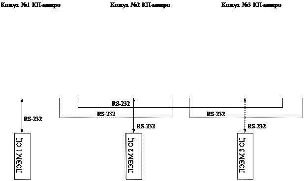 16.4. Выполнение ЦППС ИУТК «Гранит-микро», аппаратура которого размещается в двух и более кожухах КП-микро. Рекомендуется не выполнять ЦППС в одном кожухе КП-микро, если обрабатывающий центр (ОЦ) должен быть резервированным и включать две ПЭВМ. Разделение аппаратуры на две части повышает живучесть ЦППС (и системы в целом). Для разделения ОЦ ЦППС необходимо в первом и втором кожухах установить по одному дополнительному модулю КАМ. Модуль следует адаптировать для приема по внутренней магистрали данных, содержащих адреса всех RTU, подключенных к кожуху. Для информационных обменов между частями ОЦ задействуются шины RS-232, по ним ретранслируются данные в модуль КАМ, установленный дополнительно во второй кожух КП-микро. Полученные данные модуль КАМ второго кожуха ретранслирует через внутреннюю магистраль и основной КАМ в ПЭВМ второй части обрабатывающего центра. Аналогично, данные, полученные от модулей второй части ОЦ, через внутреннюю магистраль будут введены в модуль КАМ и ретранслированы в шины RS-232. Данные будут приняты модулем КАМ первой части ОЦ и ретранслированы через внутреннюю магистраль и основной КАМ в ПЭВМ первой части ОЦ. Таким образом, обе части ОЦ работают независимо. Выход из строя одной ПЭВМ ОЦ не приводит к потере данных в другой ПЭВМ. Дальнейшего повышения «живучести» ЦППС можно добиться организацией перекрестных связей между ПЭВМ ОЦ с использованием второго com port в каждой из них. Пример выполнения ЦППС с резервированным ОЦ приведен на схеме.
