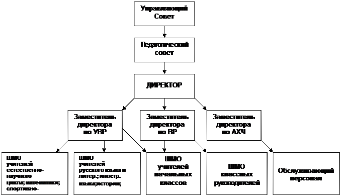 3. Управление школой Управление Учреждением осуществляется в соответствии с действующим Законом РФ "Об образовании", Законом Саратовской области "Об образовании", Типовым положением об общеобразовательном учреждении в Российской Федерации на принципах демократичности, открытости, приоритета общечеловеческих ценностей, охраны жизни и здоровья человека, свободного развития личности. Управление осуществляется на основе сочетания принципов самоуправления и единоначалия. Органы управления Учреждения: Учредитель, директор, педагогический совет, Попечительский совет, собрание трудового коллектива, родительский комитет. Структура управление (схема 1). Организационная структура Схема 1
