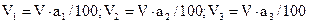 – содержание в шихте, соответственно глины, выгорающих (опилки, уголь, лигнин) и отощающих (зола, песок, шлак) добавок, %; Производительность дозаторов рассчитывается для каждого компонента: глины (V1 ); выгорающих (V2 ); отощающих (V3 ) добавок: