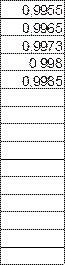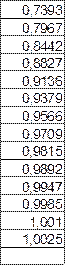 Для снятия кривой разгона подаем на алгоблок возмущающее воздействие амплитудой 10% и снимаем с этого алгоблока кривую разгона. Заносим кривую в файл VIT1.После интерполяции по 5 точкам и нормирование получаем кривую разгона , представленную в таблице /см. табл. 2.1