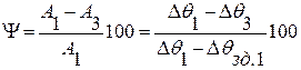 Степень затухания "y" - это отношение разности первого "А1 " и третьего "А3 " амплитудных значений отклонения к первому амплитудному значению "А1 " в затухающем колебательном переходном процессе на выходе системы. Значение может выражаться в процентах