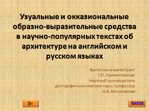 Рисунок 8 – ABBYY Lingvo 12 Итак, все описанные выше лингвистические программы действительно могут быть полезны при исследовании англоязычных и русскоязычных искусствоведческих текстов. Однако не стоит всецело полагаться на данные, полученные с помощью таких программ. Лучше еще раз проверить и проанализировать их самостоятельно. Данный реферат представляет собой самостоятельное исследование возможностей и эффективности применения ИТ в лингвистике в целом и при изучении англоязычных и русскоязычных искусствоведческих текстов в частности. Обзор литературных источников, посвященных взаимодействию и взаимосвязи ИТ и лингвистики, показал, что их авторы в основном освещают следующие вопросы: ИТ в обработке текстов; автоматическое чтение текста; системы понимания устной речи; системы автоматического реферирования и аннотирования текстов; машинный перевод текстов; системы порождения текстов; автоматизированные информационно-поисковые системы; разработка различных баз данных для гуманитарных наук; разработка различного типа автоматических словарей; создание систем обучения языку. Все эти направления, находящиеся на пересечении сфер лингвистики и ИТ, реализованы на практике в виде конкретных лингвистических программ и ресурсов сети Интернет, которые можно разделить на 9 групп, рассмотренных выше. Каждая из этих групп, как мы убедились, представлена, в свою очередь, большим разнообразием программ (ресурсов), многие из которых мы кратко охарактеризовали, назвав их основные преимущества. Большинство программ действительно эффективны, а иногда и вовсе необходимы при проведении лингвистических исследований. Мы также на практике ознакомились с программами TextAnalyst 2.0, Худломер, Translate.Ru и Google Переводчик и оценили их возможности применительно к исследованию русскоязычных и англоязычных искусствоведческих текстов. Выяснилось, что TextAnalyst 2.0 помогает анализировать содержание текста, автоматически формирует семантическую сеть с гиперссылками, создает "смысловой портрет" текста в терминах основных понятий и их смысловых связей, осуществляет реферирование текста. Худломер автоматически определяет стиль текста, однако не всегда делает это правильно. Translate.Ru и Google Переводчик переводят англоязычные искусствоведческие тексты недостаточно точно и корректно – полученный перевод подлежит обязательному редактированию. ИТ в наше время развиваются очень быстрыми темпами. В перспективе, возможно, появятся технологии, которые будут настолько точно обрабатывать языковой материал, что лингвисту не придется сомневаться в полученных результатах. 1. Бесплатный онлайн переводчик текстов и сайтов PROMT Translate.Ru [Электронный ресурс]. – 2003-2009. Режим доступа: http://www.translate.ru/. – Дата доступа: 15.12.2010. 2. Вигурский К.В., Пильщиков И.А. Филология и современные информационные технологии (К постановке проблемы) // Научно-технический центр "Информрегистр" [Электронный ресурс]. – 2007-2009. – Режим доступа: http://feb.inforeg.ru/vigursky-03.html. – Дата доступа: 02.12.2010. 3. Всеволодова А.В. Компьютерная обработка лингвистических данных: учеб. пособие / А.В. Всеволодова. – 2-е изд., испр. – М.: Наука: Флинта, 2007. – 96 с. 4. Зубов А.В. Информационные технологии в лингвистике: Учеб. пособие для студ. лингв. фак-тов высш. учеб. заведений / А.В. Зубов, И.И. Зубова. – М.: Академия, 2004. – 208 с. 5. Зубов А.В., Зубова И.