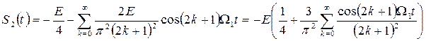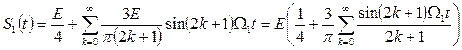 Анализируемый сигнал не является ни четной, ни нечетной функцией времени. Представим его в виде суммы более простых сигналов. Такое представление может быть многообразным, поэтому важно добиться возможно большего упрощения при вычислениях. Заметим, что исходный сигнал имеет равную нулю постоянную составляющую. Один из вариантов представления сигнала в виде суммы двух сигналов