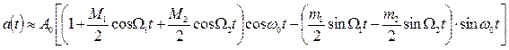Огибающая A(t) образована путем нелинейного преобразования суммы трех гармонических колебаний с частотами Мгновенная частота определяется формулой: