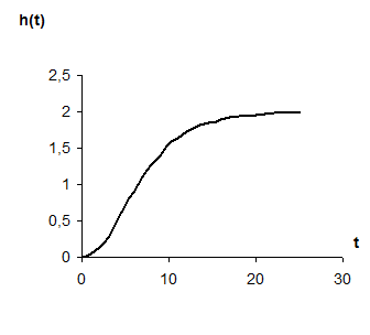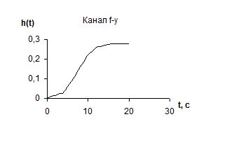 Определим параметры передаточной функции, проводим касательную к кривой. Пересечение касательной с осью времени дает время запаздывания: tо = 3,2 с. Пересечение касательной с пределом установившегося значения дает: tо +То = 11,7 => То = 8,5 с. Установившееся значение есть коэффициент передачи: Коб = hуст = 0,28; следовательно, получаем передаточную функцию: