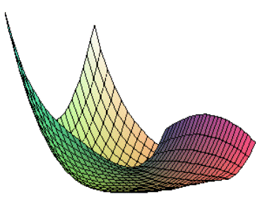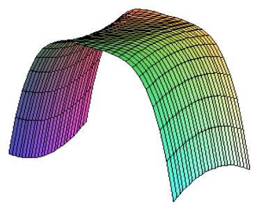 Рис.49.Поверхность. Поверхность такого вида получила название сборка . Это из типов элементарных катастроф. В теории катастроф проводится математическое исследование каждой элементарной катастрофы. Например, катастрофа сборки имеет вид F ( x ; a , b )=+ x 4 + ax + bx 2 . Теперь, зная функциональную зависимость можете самостоятельно построить поверхность вручную или с помощью компьютера. История создания теории катастроф (1час). Лекцию об истории создания теории катастроф надо начинать с механики. В 1686 году Исаак Ньютон рассмотрел движение простого маятника в воздухе и воде («Математические начала натуральной философии»). Затухающие колебания такого маятника [1.C.11]. Рассмотренные колебания являются затухающими (рис.50). например неустойчивой системы. A